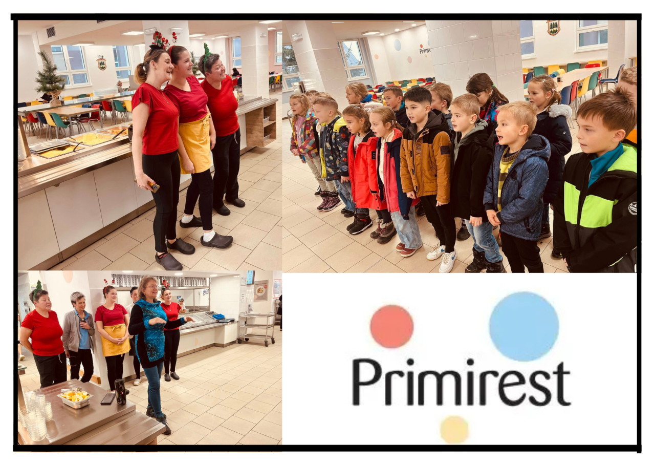 Krásné a klidné vánoční svátky, hodně pohody, zdraví a radosti do nového roku jsme poslední školní den roku 2025 popřáli paním kuchařkám, kuchařům a personálu naší školní jídelny PRIMIREST.