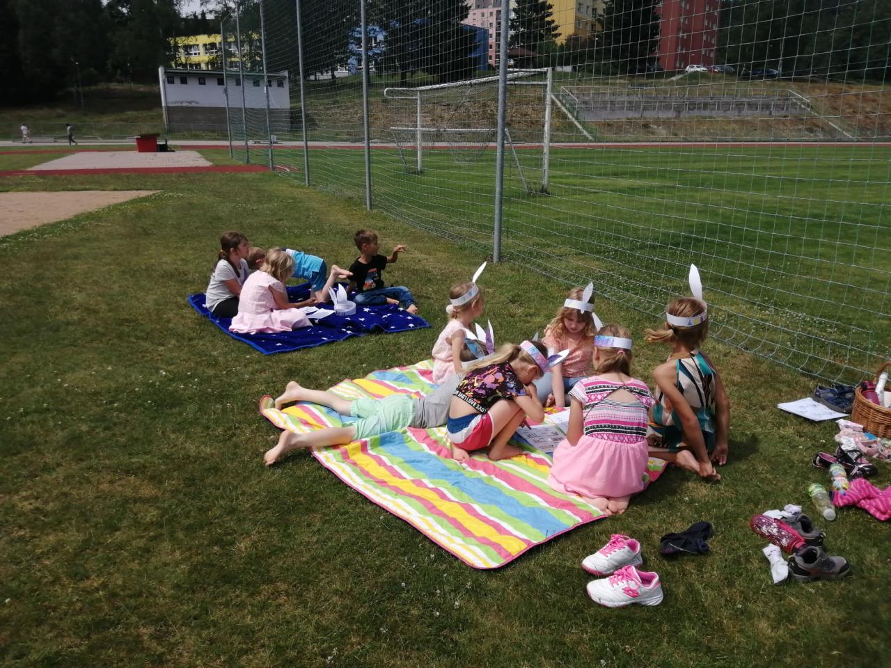 Na závěr školního roku jsme dětem připravili indiánskou bojovku a stopovanou s hledáním pokladu. Děti plnily různé úkoly a seznámily se s morseovkou. Přejeme všem prosluněné léto plné krásných zážitků.